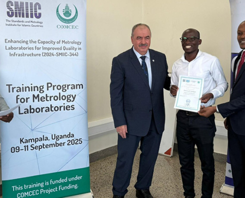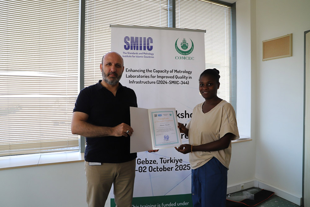 SMIIC tarafından Uganda ve Sudan iş birliğinde yürütülen “Kalite Altyapısını İyileştirmek için Metroloji Laboratuvarlarının Kapasitesini Artırma” projesi çerçevesinde ilk olarak 9-11 Eylül 2025 tarihlerinde, Kampala (Uganda)’da bulunan altı farklı laboratuvarda bir eğitim programı gerçekleştirilmiştir. Eğitimin ardından, Uganda ve Sudan’dan katılımcıların yer aldığı bir çalıştay 1-2 Ekim 2025 tarihlerinde Gebze (Türkiye)’de düzenlenmiştir. Katılımcılar çalıştay süresince iyi uygulama örneklerini inceleme ve pratik çalışmalar yapma fırsatı bulmuş; böylece proje kapsamındaki tüm faaliyetler tamamlanmıştır.